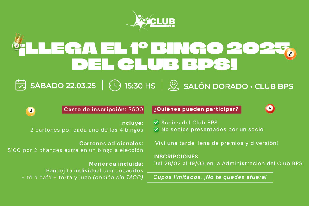 ¡Llega el 1.er BINGO del 2025 en el Club BPS! ![]()